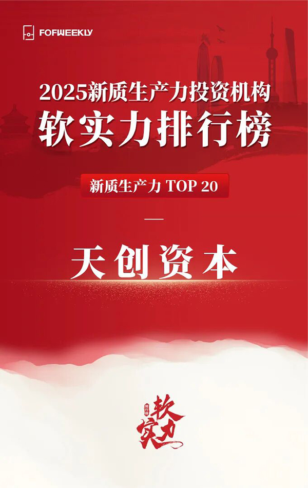 天创资本荣膺FOFWEEKLY「2025新质生产力投资机构软实力排行榜·新质生产力TOP20」